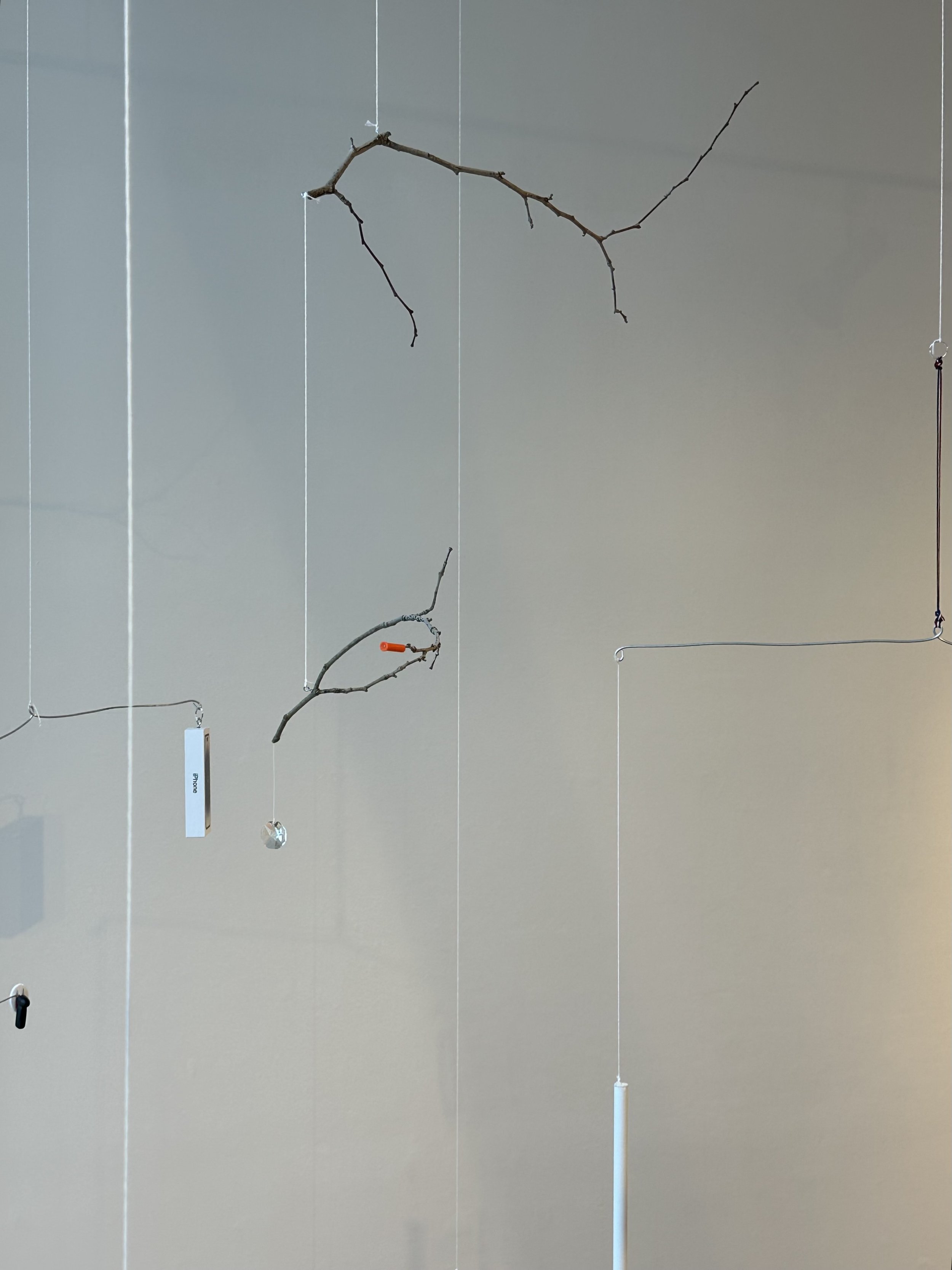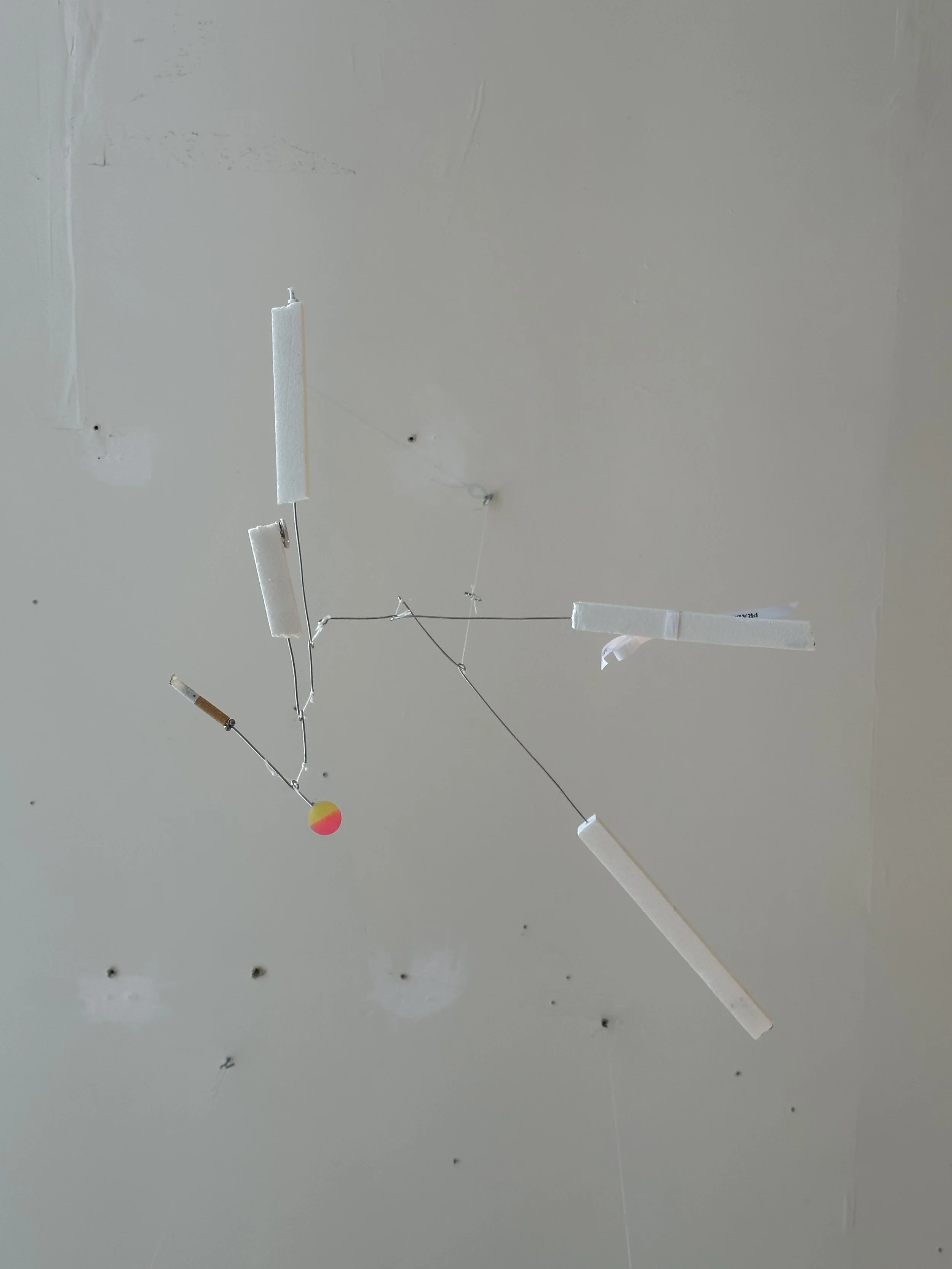 In this project, I collected found objects from the Mission District, San Francisco, and nearby neighborhoods and assembled them into mobiles. Each object reflects the conditions of the site where it was found, becoming a stand-in for local happenings and histories. The mobiles explore balance as both a physical necessity and a metaphor…reflecting the fragile systems we move through, precarious yet somehow still holding together.